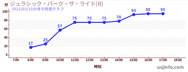 • ジュラシック・パーク・ザ・ライド(R)$B$N(B2022年03月15日の待ち時間