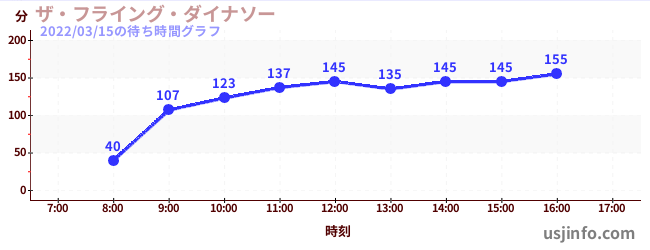 • ザ・フライング・ダイナソー$B$N(B2022年03月15日の待ち時間