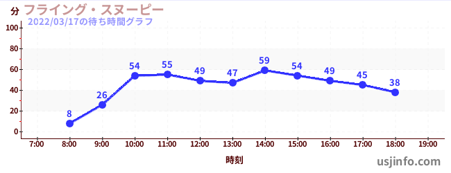 • フライング・スヌーピー$B$N(B2022年03月17日の待ち時間