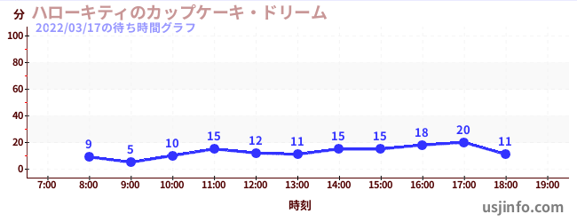 • ハローキティのカップケーキ・ドリーム$B$N(B2022年03月17日の待ち時間
