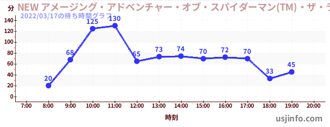 • NEW アメージング・アドベンチャー・オブ・スパイダーマン(TM)・ザ・ライド 4K3D$B$N(B2022年03月17日の待ち時間