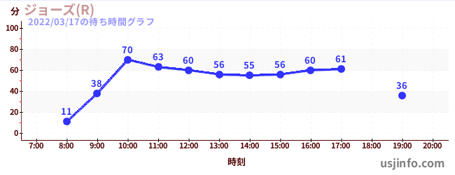 • ジョーズ(R)$B$N(B2022年03月17日の待ち時間