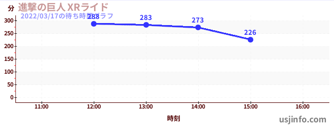 • 進撃の巨人 XRライド$B$N(B2022年03月17日の待ち時間