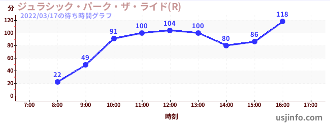 • ジュラシック・パーク・ザ・ライド(R)$B$N(B2022年03月17日の待ち時間