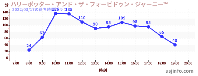 • ハリーポッター・アンド・ザ・フォービドゥン・ジャーニー™$B$N(B2022年03月17日の待ち時間