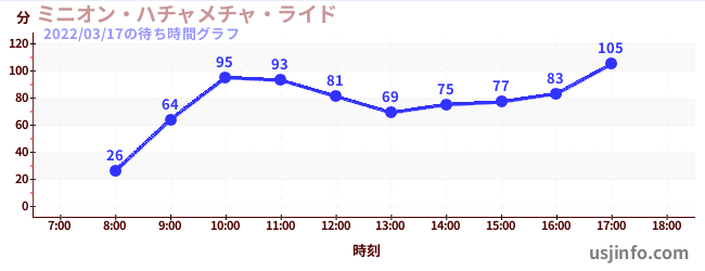 • ミニオン・ハチャメチャ・ライド$B$N(B2022年03月17日の待ち時間