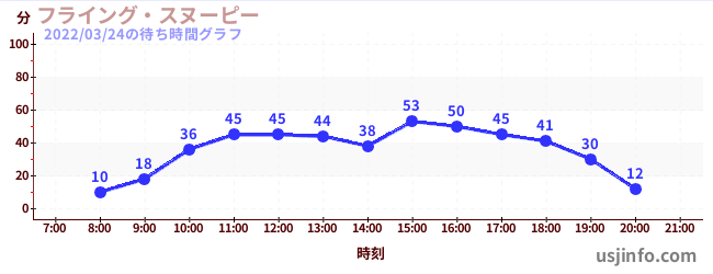 • フライング・スヌーピー$B$N(B2022年03月24日の待ち時間