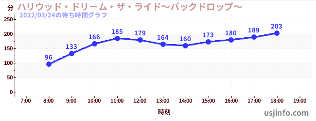 • ハリウッド・ドリーム・ザ・ライド〜バックドロップ〜$B$N(B2022年03月24日の待ち時間