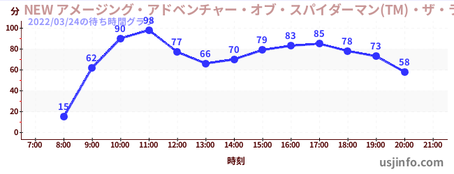 • NEW アメージング・アドベンチャー・オブ・スパイダーマン(TM)・ザ・ライド 4K3D$B$N(B2022年03月24日の待ち時間