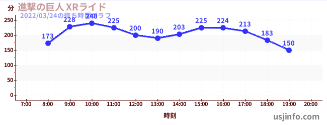 • 進撃の巨人 XRライド$B$N(B2022年03月24日の待ち時間