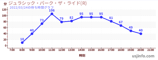 • ジュラシック・パーク・ザ・ライド(R)$B$N(B2022年03月24日の待ち時間