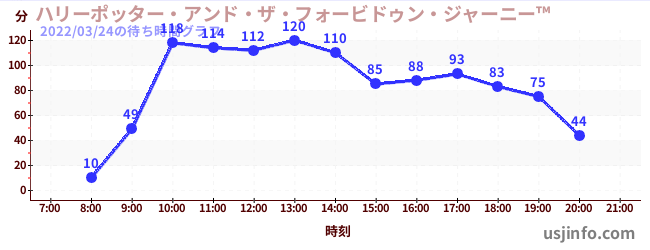 • ハリーポッター・アンド・ザ・フォービドゥン・ジャーニー™$B$N(B2022年03月24日の待ち時間