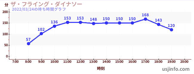 • ザ・フライング・ダイナソー$B$N(B2022年03月24日の待ち時間