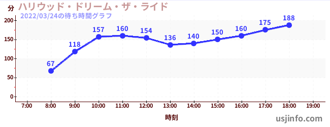 • ハリウッド・ドリーム・ザ・ライド$B$N(B2022年03月24日の待ち時間