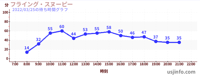 • フライング・スヌーピー$B$N(B2022年03月25日の待ち時間