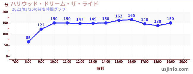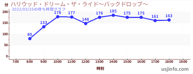 • ハリウッド・ドリーム・ザ・ライド〜バックドロップ〜$B$N(B2022年03月25日の待ち時間
