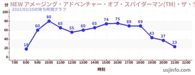 • NEW アメージング・アドベンチャー・オブ・スパイダーマン(TM)・ザ・ライド 4K3D$B$N(B2022年03月25日の待ち時間