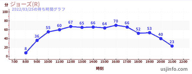 • ジョーズ(R)$B$N(B2022年03月25日の待ち時間