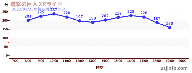 • 進撃の巨人 XRライド$B$N(B2022年03月25日の待ち時間