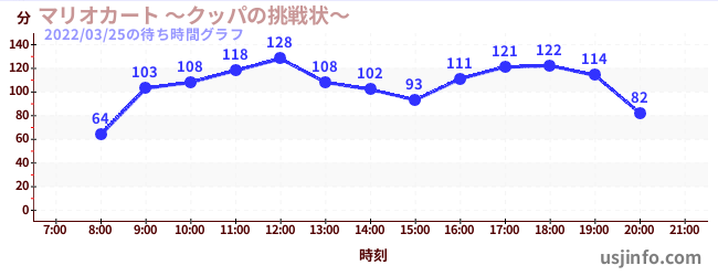 • マリオカート ~クッパの挑戦状~$B$N(B2022年03月25日の待ち時間
