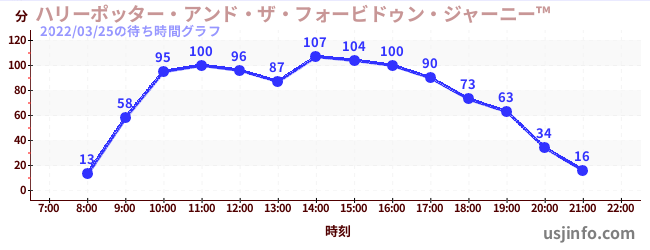 • ハリーポッター・アンド・ザ・フォービドゥン・ジャーニー™$B$N(B2022年03月25日の待ち時間