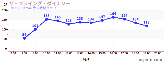 • ザ・フライング・ダイナソー$B$N(B2022年03月25日の待ち時間