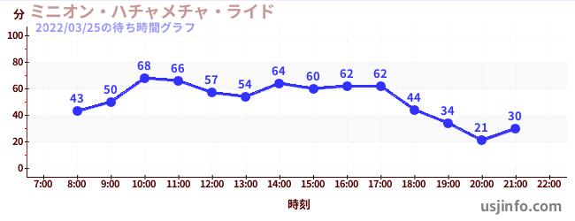 • ミニオン・ハチャメチャ・ライド$B$N(B2022年03月25日の待ち時間