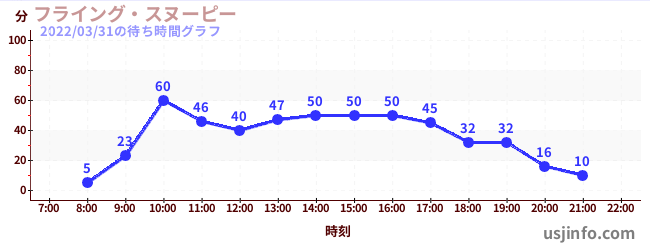 • フライング・スヌーピー$B$N(B2022年03月31日の待ち時間