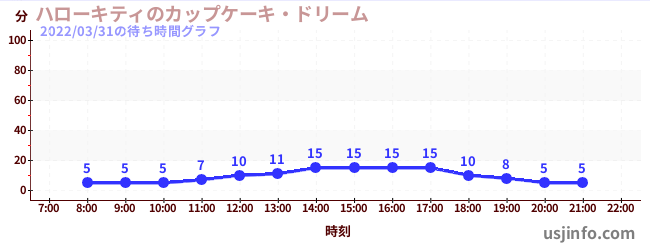 • ハローキティのカップケーキ・ドリーム$B$N(B2022年03月31日の待ち時間