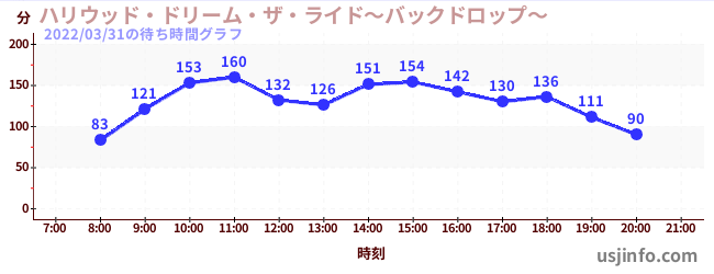 • ハリウッド・ドリーム・ザ・ライド〜バックドロップ〜$B$N(B2022年03月31日の待ち時間