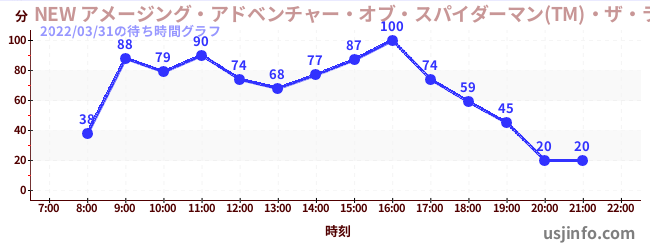 • NEW アメージング・アドベンチャー・オブ・スパイダーマン(TM)・ザ・ライド 4K3D$B$N(B2022年03月31日の待ち時間