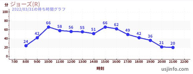 • ジョーズ(R)$B$N(B2022年03月31日の待ち時間