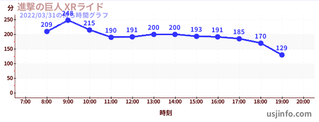• 進撃の巨人 XRライド$B$N(B2022年03月31日の待ち時間