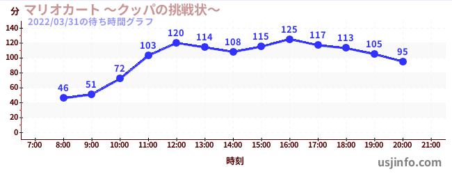 • マリオカート ~クッパの挑戦状~$B$N(B2022年03月31日の待ち時間