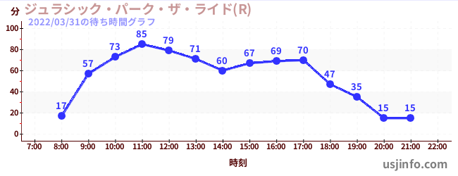 • ジュラシック・パーク・ザ・ライド(R)$B$N(B2022年03月31日の待ち時間