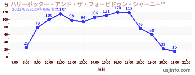 • ハリーポッター・アンド・ザ・フォービドゥン・ジャーニー™$B$N(B2022年03月31日の待ち時間