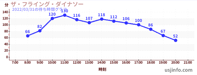 • ザ・フライング・ダイナソー$B$N(B2022年03月31日の待ち時間