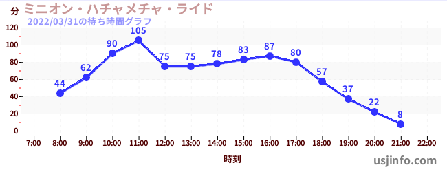 • ミニオン・ハチャメチャ・ライド$B$N(B2022年03月31日の待ち時間