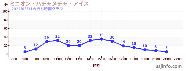 • ミニオン・ハチャメチャ・アイス$B$N(B2022年03月31日の待ち時間