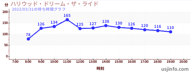 • ハリウッド・ドリーム・ザ・ライド$B$N(B2022年03月31日の待ち時間