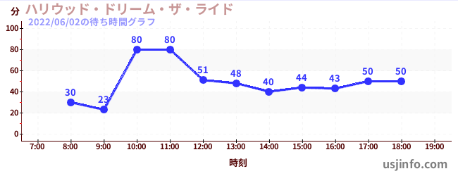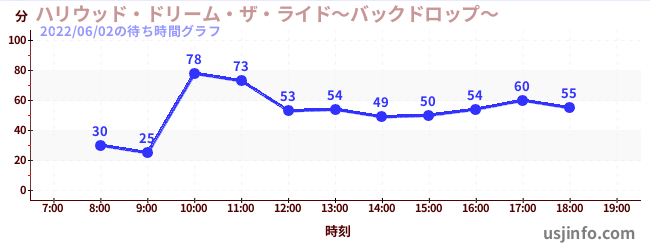 • ハリウッド・ドリーム・ザ・ライド〜バックドロップ〜$B$N(B2022年06月02日の待ち時間