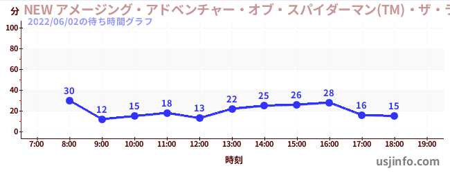 • NEW アメージング・アドベンチャー・オブ・スパイダーマン(TM)・ザ・ライド 4K3D$B$N(B2022年06月02日の待ち時間