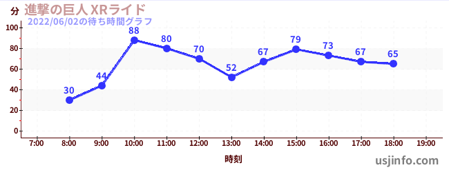 • 進撃の巨人 XRライド$B$N(B2022年06月02日の待ち時間