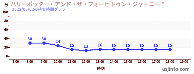 • ハリーポッター・アンド・ザ・フォービドゥン・ジャーニー™$B$N(B2022年06月02日の待ち時間