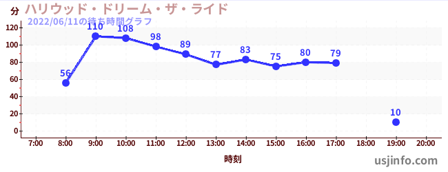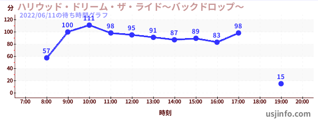 • ハリウッド・ドリーム・ザ・ライド〜バックドロップ〜$B$N(B2022年06月11日の待ち時間