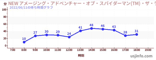 • NEW アメージング・アドベンチャー・オブ・スパイダーマン(TM)・ザ・ライド 4K3D$B$N(B2022年06月11日の待ち時間