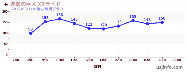 • 進撃の巨人 XRライド$B$N(B2022年06月11日の待ち時間