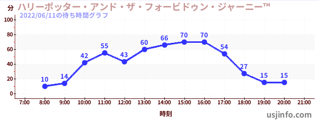 • ハリーポッター・アンド・ザ・フォービドゥン・ジャーニー™$B$N(B2022年06月11日の待ち時間