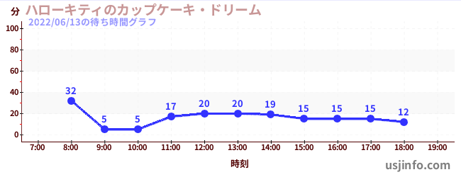 • ハローキティのカップケーキ・ドリーム$B$N(B2022年06月13日の待ち時間
