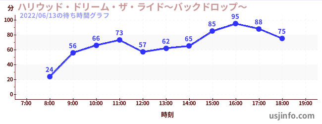 • ハリウッド・ドリーム・ザ・ライド〜バックドロップ〜$B$N(B2022年06月13日の待ち時間